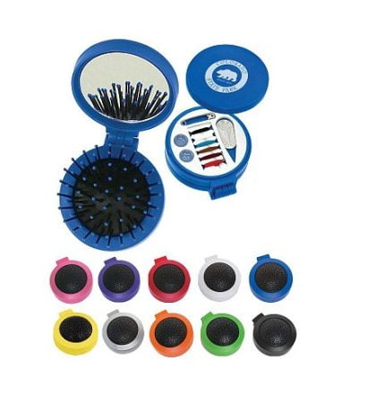 Cepillo colapsable con espejo y costurero, redondo