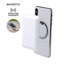 Batería auxiliar externa con tecnología de carga inalámbrica de gran capacidad -5.000 mAh-. De diseño compacto y con fijación magnética para poder usar el dispositivo mientras se produce la carga del mismo. Conexión Tipo-C de entrada de corriente y USB de salida, con cable de carga tipo C incluido. Botón ON/OFF, ledes indicadores de estado de carga y amplia superficie de marcaje