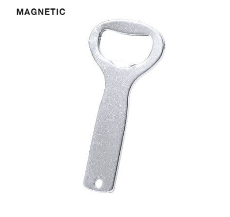 Sencillo y elegante abridor fabricado en aluminio y con imán en el mango. Presentación individual en bolsa autocierre.