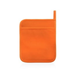 Agarrador de cocina en alta calidad en combinación de materiales neopreno y poliéster de variada gama en vivos colores. Con una cara lisa especialmente diseñada para impresión y cinta para colgar.