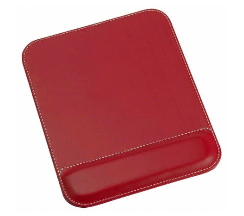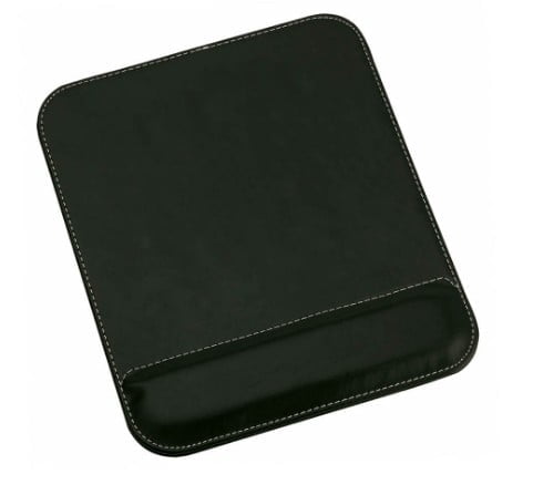 Alfombrilla para ratón fabricada en suave polipiel, con contraste de color blanco en las costuras. Base antideslizante y reposa muñecas acolchado para prevenir el estrés y el dolor en las articulaciones. Presentada en estuche individual.