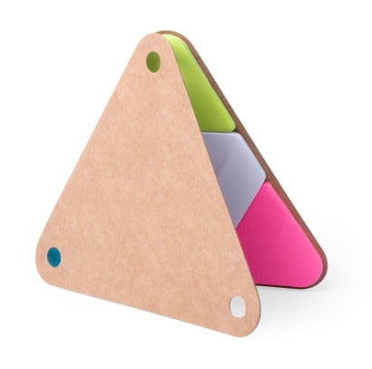 Original bloc de notas adhesivas con diseño triangular y tapas de suave tacto acabadas en resistente cartón reciclado. Orificios en las esquinas para mostrar el color de las notas adhesivas interiores. Con 20 notas adhesivas medianas y 60 mini notas adhesivas.