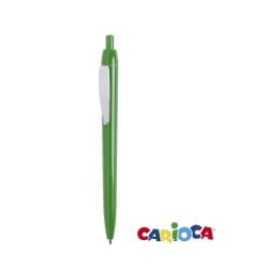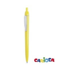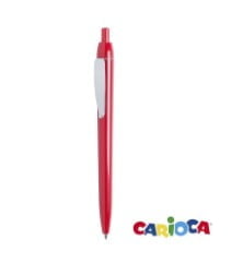 Bolígrafo Glamour de Carioca, con mecanismo pulsador y suave cuerpo acabado en variada gama de vivos colores. Con Clip metálico y tinta azul.