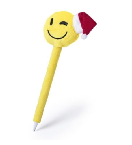 Bolígrafo de divertidos diseños emoji navideños en llamativo color amarillo. Con suave cuerpo de peluche y tinta azul.