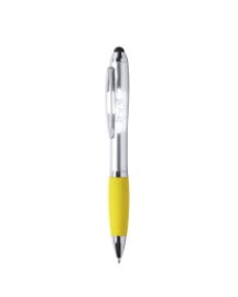 Bolígrafo puntero de mecanismo giratorio con luz led interior y cuerpo especialmente diseñado para marcaje en láser, iluminando así el logotipo. Con suave empuñadura en variada gama de vivos colores y tinta azul.