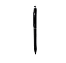 Bolígrafo puntero de mecanismo giratorio con cuerpo en aluminio de suave acabado metalizado en variados colores. Accesorios en negro y anillas en color plateado. Tinta azul.
