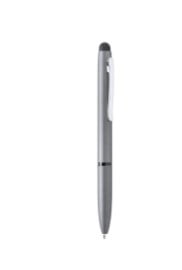 Bolígrafo puntero de mecanismo giratorio con cuerpo en aluminio de suave acabado metalizado. Con clip cromado. Colores dorado, rosa y plateado con acabado brillo y color grafito con acabado mate. Tinta azul.