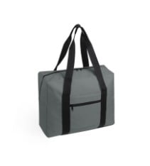 Bolso multiusos en resistente poliéster 600D y desenfadado diseño bicolor. Compartimento principal con cierre de cremallera y doble tirador, con accesorio de ajuste en trolley, resistentes asas de nylon y bolsillo lateral de cremallera.
