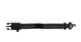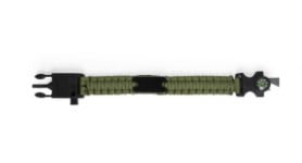 Brazalete multifunción para los más aventureros en resistente nylon. 5 funciones: brazalete, brújula, silbato, cuchillo rascador y abridor. Disponible en variada gama de colores, con cierre de hebilla de seguridad.
