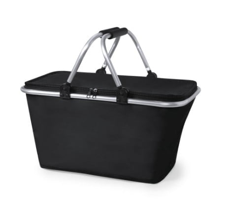 Cesta térmica en resistente poliéster 600D con interior de aluminio libre de BPA. Cierre de cremallera, con estructura de aluminio plegable y asas con EVA para mayor comodidad en el transporte. Resistencia de hasta 15 kg de peso