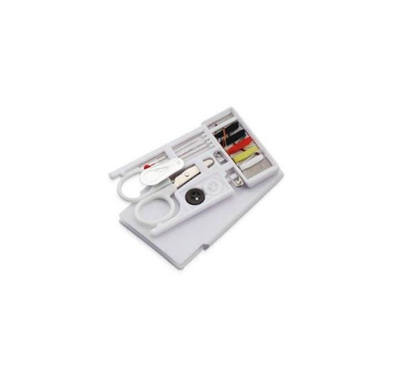Costurero plástico modelo tarjeta de crédito, delgado, con tijeras, alfileres, botones e hilos surtidos