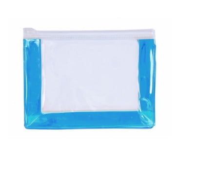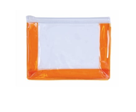 Neceser multiusos en resistente PVC transparente de variada gama en vivos colores. Con laterales en color y cierre hermético.