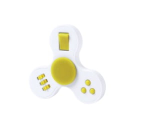 Fidget spinner antiestrés sencillo con multitud de botoncitos relajantes con cuerpo en color blanco y accesorios en variada gama de vivos colores.