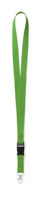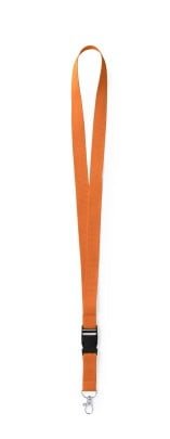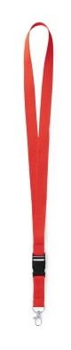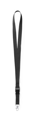 Lanyard en resistente poliéster con hebilla multifunción y gancho metálico. Disponible en variada gama de colores.