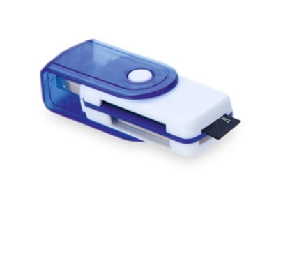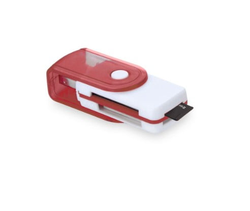 Original lector de tarjetas de apertura giratoria, con conexión USB 2.0 y en divertidos diseños bicolor. Compatible con tarjetas M2, MS Duo, micro SD y SD. Presentado en caja individual.