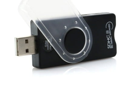 Práctico lector de Smart Card con conexión USB 2.0. De apertura giratoria y diseño minimalista, integra además ranuras para tarjetas de memoria tipo MS, M2, SD, MiniSD, SmartCard, SIM y MicroSD. Compatible con Windows y macOS.