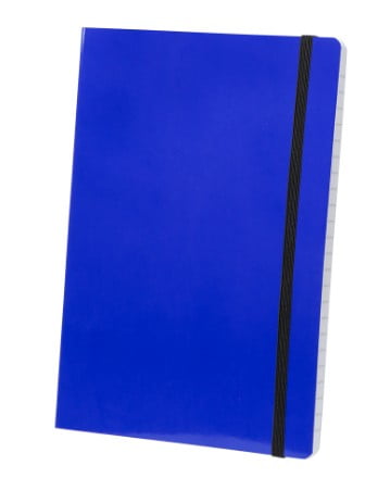Libreta con tapas de suave tacto acabadas en cartón brillante en originales colores. De 80 hojas con distribución a una raya, con elástico de sujeción y marcapáginas de tela en elegante color negro.