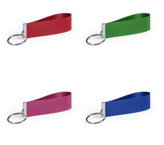 Llavero en resistente poliéster con detalles en metal. Disponible en variada gama de colores.
