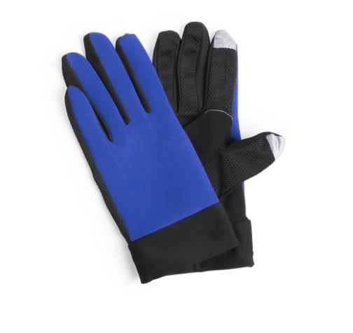 Par de guantes deportivos fabricados en resistente poliéster y licra. En diseño bicolor, con base en negro y detalles a color. Agarre en palma y función táctil en dedos índice y pulgar. Talla única para adultos.