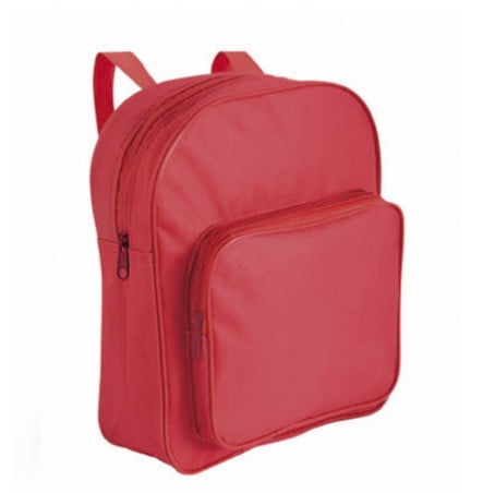 Mochila para niño en resistente poliéster 600D de desenfadado diseño en alegre gama de colores y con ribete de refuerzo a juego. Con cierre de cremallera a juego, bolsillo frontal y esquinas reforzadas. Cintas de hombros ajustables a juego