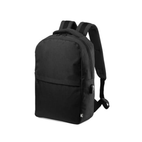 Mochila de negocios en resistente 600D RPET, elaborado a partir de plástico reciclado, para así fomentar la reutilización de residuos plásticos y ayudar a la sostenibilidad del planeta. Con cierre de cremallera de doble tirador y bolsillo en frontal.