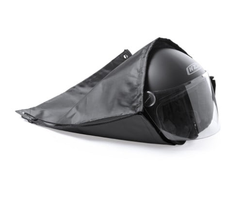 Mochila de cuerdas en suave poliéster 210D especialmente diseñada para cascos de motociclistas. Con cuerdas autocierre en color negro y esquinas con argollas metálicas y refuerzo de polipiel a juego.