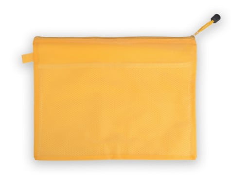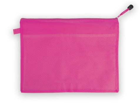 Original portadocumentos de cierre hermético con cuerpo acabado en elegante PVC de vivos colores. Con cinta reforzada en tirador a juego para cómoda apertura.