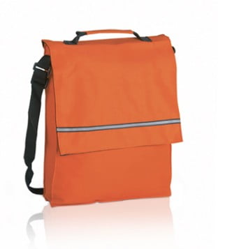 Porta documentos con solapa de cierre de velcro en poliéster 600D de vivos colores y con franja frontal reflectante. Con asas reforzada a juego, cinta bandolera ajustable y compartimentos interiores con fundas para bolígrafos y smartphone.
