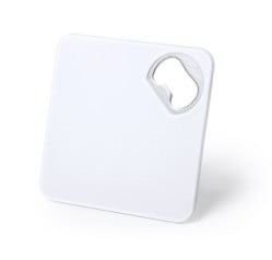 Original posavasos con abridor metálico integrado en variada gama de vivos colores. Con superficie anti deslizante en la base.