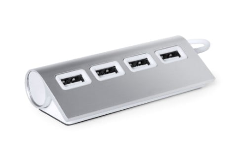 Puerto USB de diseño bicolor y elegante acabado en aluminio. Incorpora 5 puertos USB 2.0 para conectar multitud de dispositivos y está especialmente diseñado para marcaje en láser.