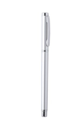Roller de capucha en elegante diseño bicolor y suave cuerpo de aluminio. Detalles en cromado y clip metálico. De cartucho jumbo y en tinta azul.