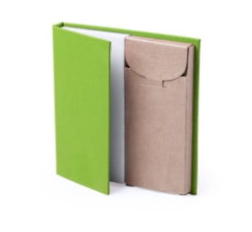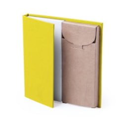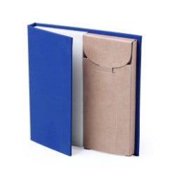 Set de bloc de notas con caja de lápices. Incluye bloc de notas de 60 hojas lisas y 6 lápices de madera en caja de cartón reciclado. Disponible en variada gama de colores.