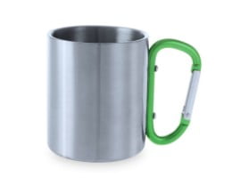 Taza de acero inox de 210ml de capacidad con cuerpo de acabado brillante y original asa mosquetón para transporte en vivos colores.