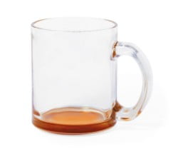 Taza de cristal de 300ml d capacidad con acabado transparente y base en variada gama de vivos colores. Presentada en caja individual