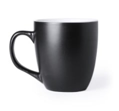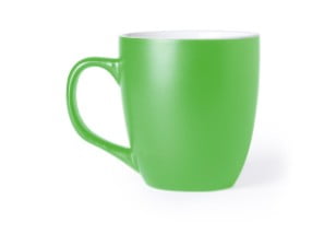 Taza de cerámica de 440ml de capacidad con exterior en variada gama de vivos colores e interior en color blanco.