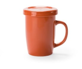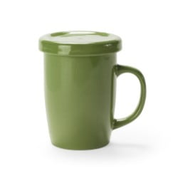 Taza de cerámica de 380ml de capacidad en divertida y amplia gama de vivos colores. Con tapadera especialmente diseñada como soporte de bolsitas de te.
