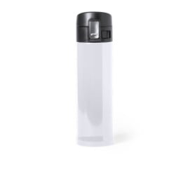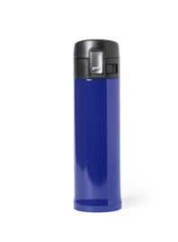 Termo en alta calidad acabado en acero inox, de doble pared. 450 ml de capacidad, con tapón de seguridad y botón de bloqueo de apertura.