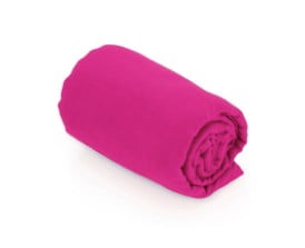 Toalla de 138x72cmcm en absorbente y suave microfibra de 200g/m2 en variados colores. Presentada en práctica bolsa de transporte de redecilla con accesorio de ajuste.