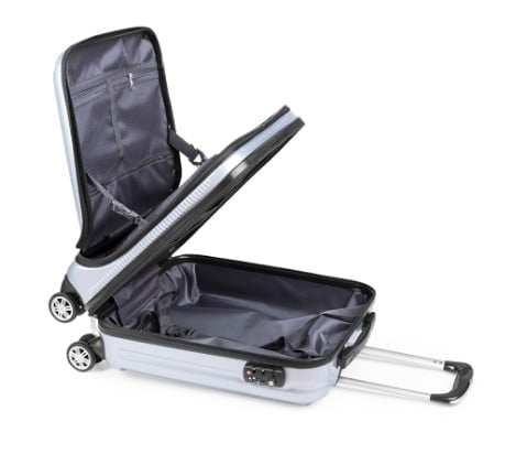 Trolley de negocios rígido en resistente material en acabado plateado. De apertura total, con 4 ruedas giratorias y cierre de seguridad por contraseña. Cierre conforme a los estándares TSA -Administración de la Seguridad en el Transporte-